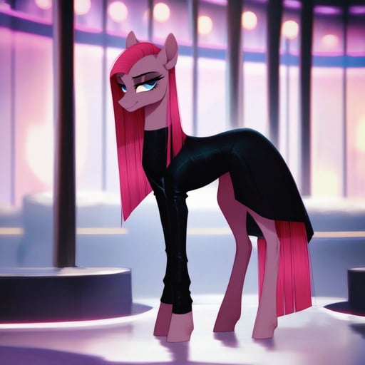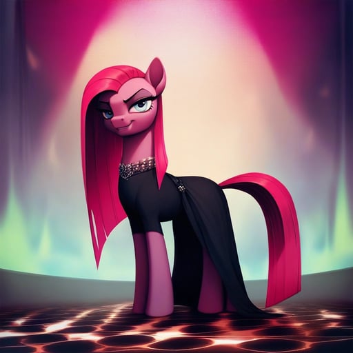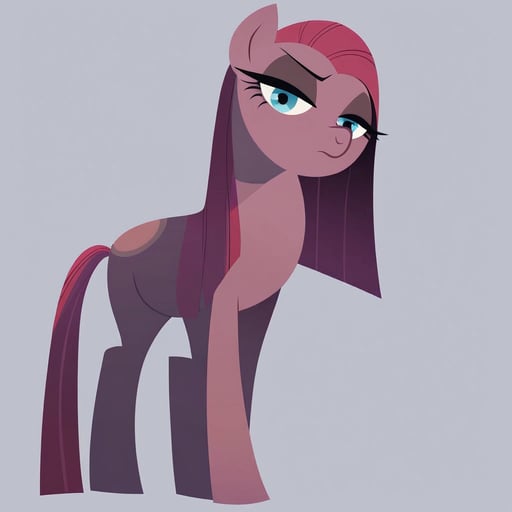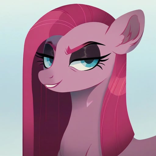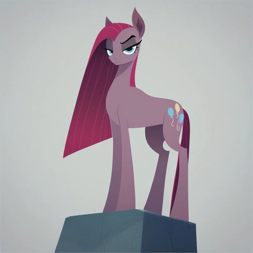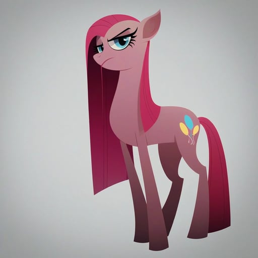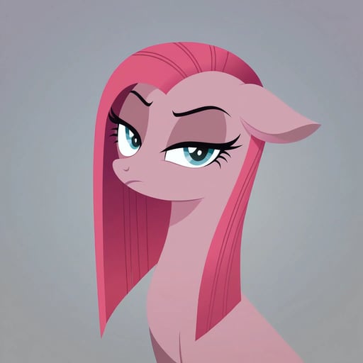 score_9, pinkamena diane pie(mlp), show accurate, feral, disdain, half-closed eyes, looking at viewer, 1girl, solo, from below, simple background, grey background, masterpiece, best quality, amazing quality, very aesthetic, high resolution, ultra-detailed, absurdres, newest, scenery, ultra-detailed