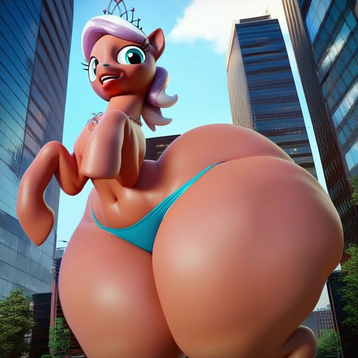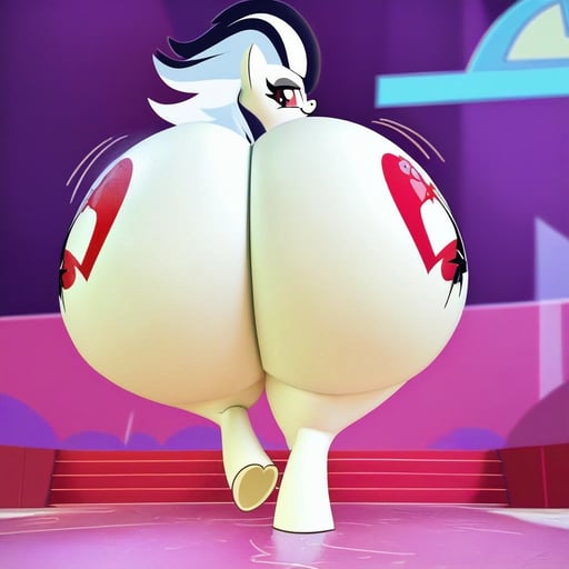 (rating_safe), score_9, Loona from Helluva Boss, ponified, my little pony: pony life,vector,show accurate, (impossibly massive butt:1.3),twerking,smug,looking back at viewer, rear view,low angle,(cutie marks),raised leg,(two hind legs),(tail)