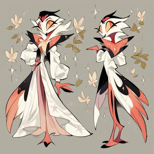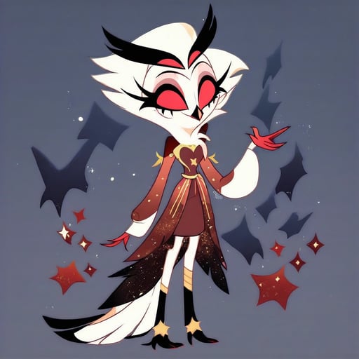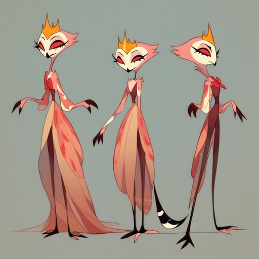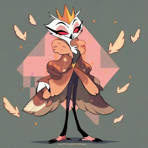 score_9, (rating_safe), helluva boss , furry, Pastel pink owl,A bird of the Goetia family, against the background of the hotel,cartoon style, full height, girl, full body, A grown lady, Tall, in a crown and an expensive dress, reference