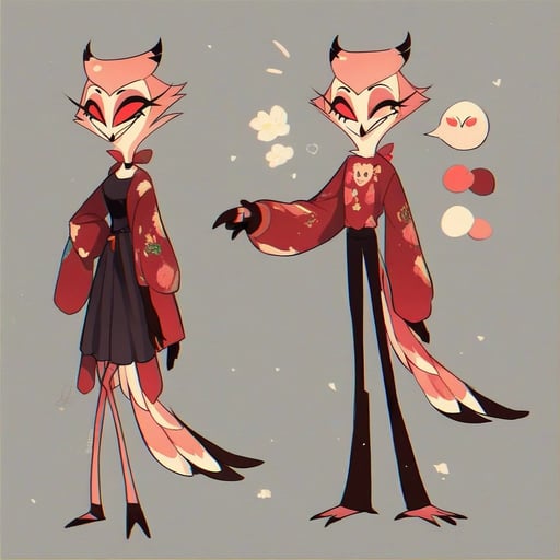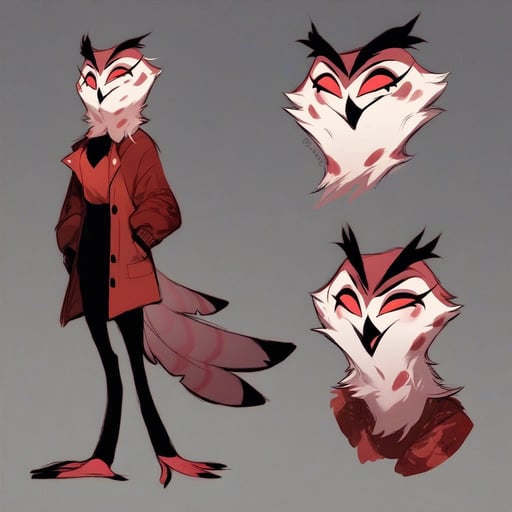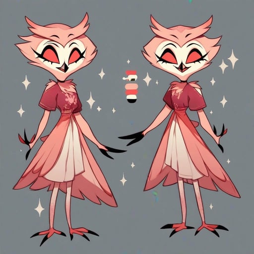 score_9, (rating_safe), helluva boss , furry, Pastel pink owl,A bird of the Goetia family, against the background of the hotel,cartoon style, full height, girl, full body, A grown lady, reference